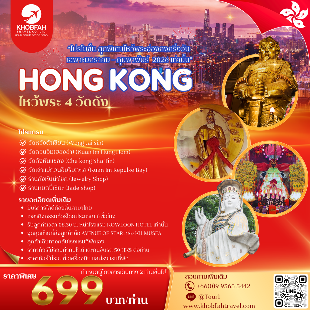 - ไม่รวม ค่าตั๋วเครื่องบิน ไป-กลับฮ่องกง